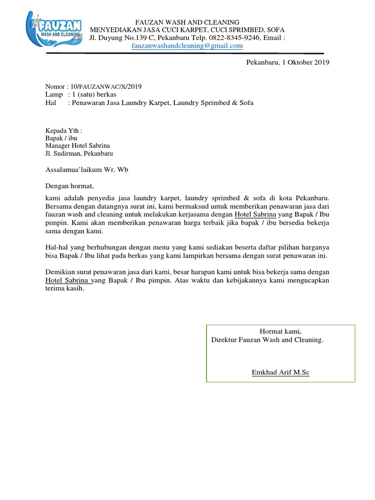 Contoh Surat Penawaran Kerjasama Jasa Laundry Hotel Simpel / Contoh Surat Penawaran Loundry Contoh Surat